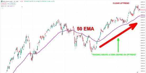 An exponential moving average strategy, or EMA strategy, is used to identify the predominant trend in the market. It can also provide the support and resistance level to execute your trade